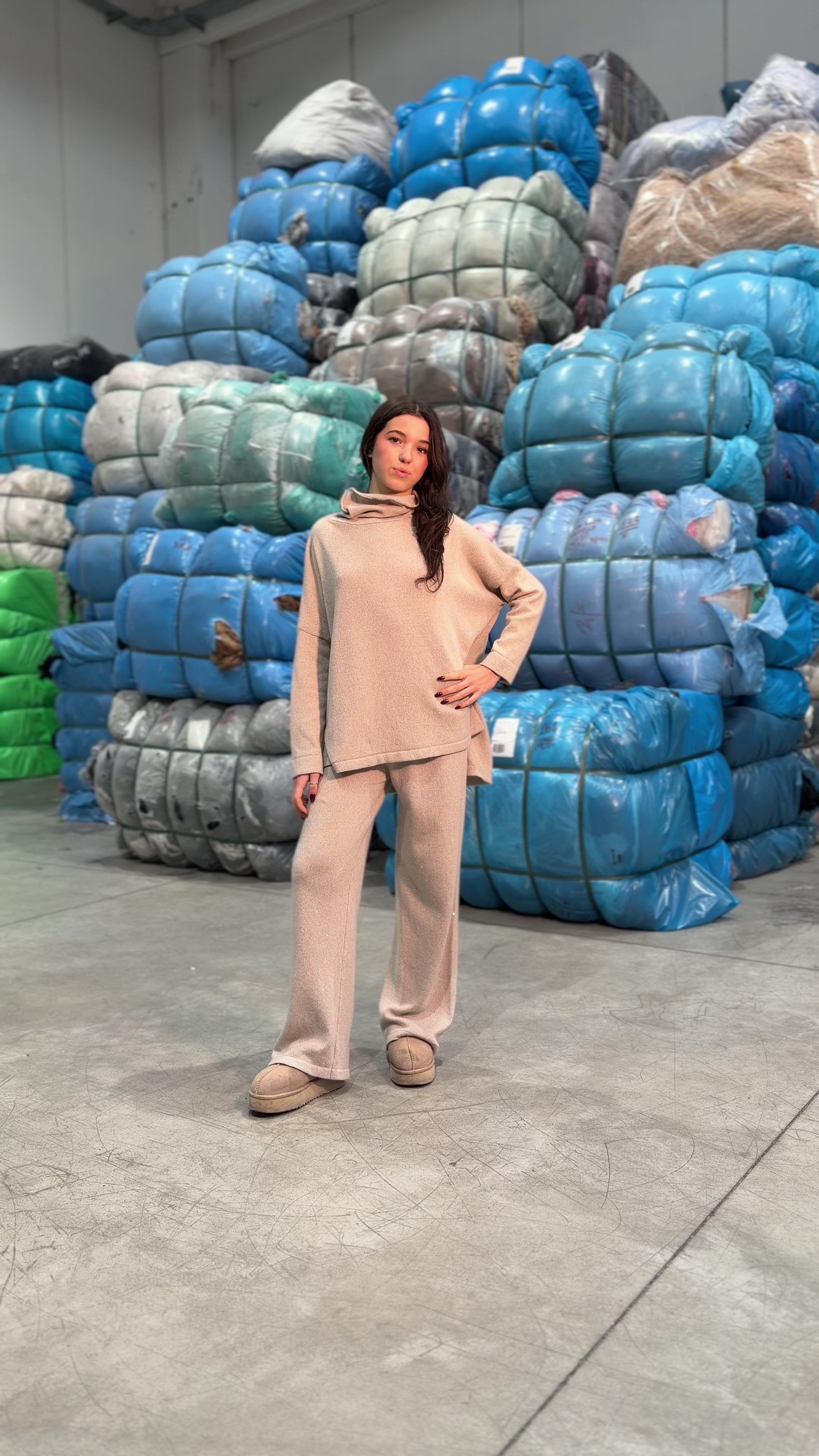 Tuta dal design morbido e avvolgente, pensata per garantire massimo comfort senza rinunciare all’eleganza. Il taglio rilassato e fluido valorizza la silhouette e la rende perfetta per i momenti di relax o per look raffinati e minimal nel quotidiano. Texture soffice, mano setosa e dettaglio paillettes leggero che aggiunge un tocco luminoso e ricercato.